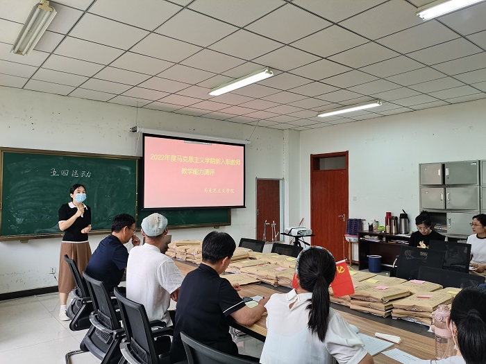 6月25日下午,马克思主义学院在启智楼B107开展了对新进教师教学能力考核工作,考核工作由马克思主义学院院长贾启红主持,纲要教研室主任王庆成、原理教研室主任夏向阳、基础教研室主任宋中展、概论教研室主任张艳霞、...